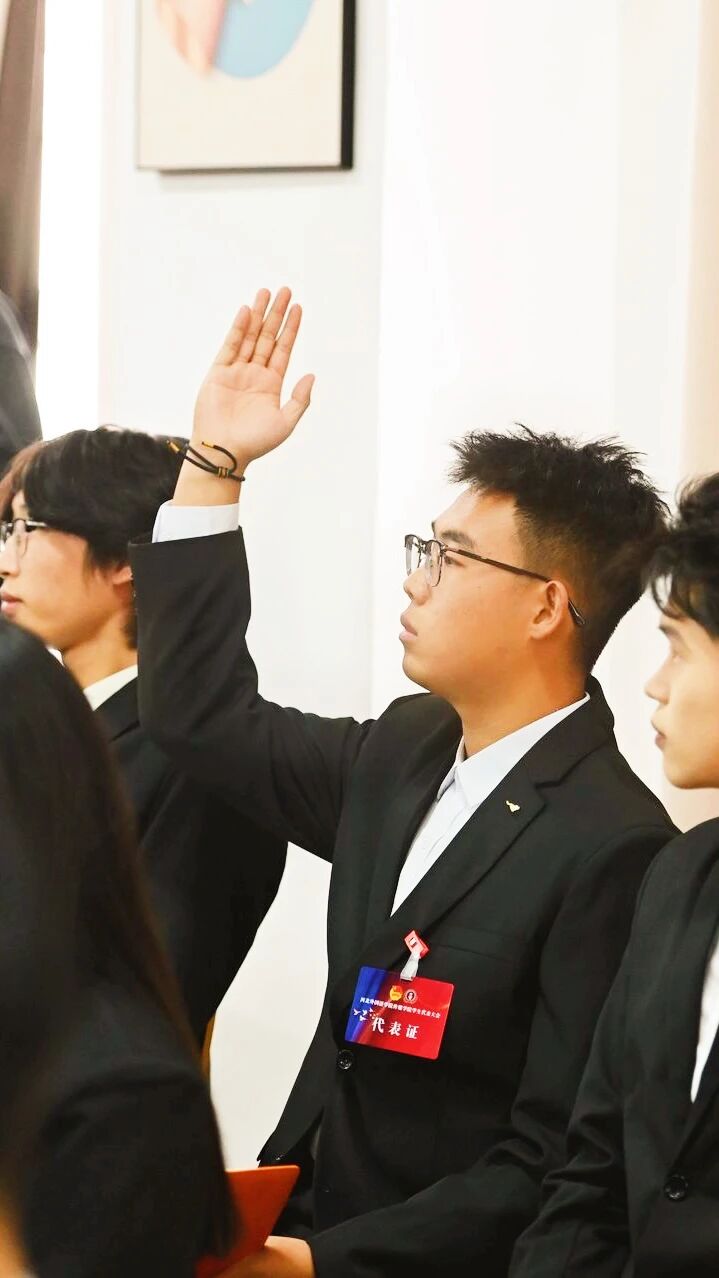 主持人对大会进行简要总结,衷心感谢王建梅部长的悉心指导、全体代表的积极参与以及工作人员的辛勤付出,并号召全体团学干部及学生代表立足岗位、履职尽责,将会议精神与河外精神转化为推动工作的实际行动,紧扣学院育人目标,以青春之力赋能学院高质量发展。