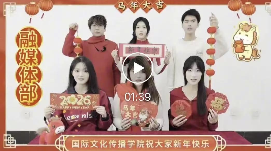 一元复始,岁启新章!值此1月1日元旦佳节来临之际,国际文化传播学院全体学生会成员,向全院师生致以最热烈的新年祝福!新的一年,愿我们心怀热忱,以青春朝气书写奋进华章,以笃行姿态奔赴万里山海。祝愿大家元旦快乐,学业有成,阖家幸福,万事顺意!